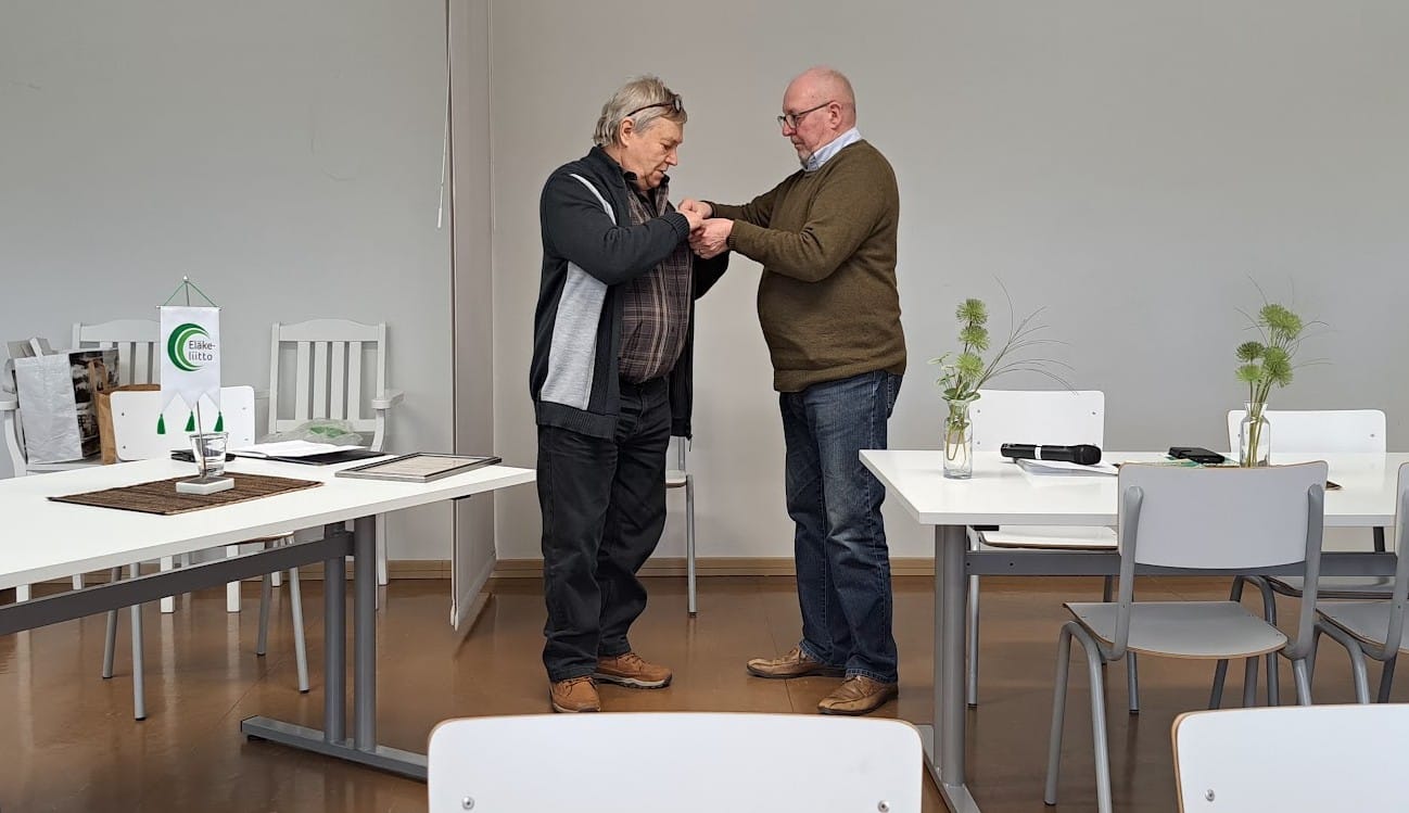 Seppo Simonen sai piirin myöntämän hopeisen ansiomerkin, koska oli estynyt 50-vuotisjuhlan jakotilaisuudesta.